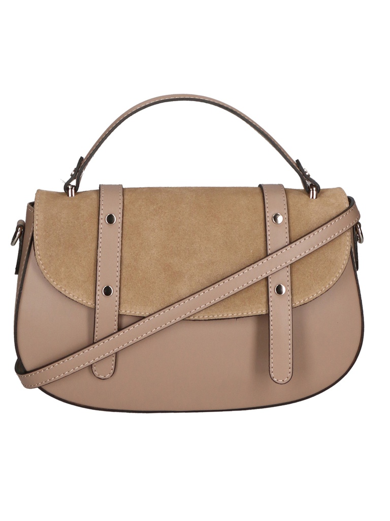Timeless elegance and Italian craftsmanship come together in this refined handbag. Crafted from luxurious suede and tumbled leather, this bag is a testament to quality and design.