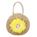 Son design rond est agrémenté d'un motif floral unique, réalisé avec de délicates coquillages qui captent la lumière et apportent une touche de fraîcheur et d'originalité. L'intérieur, doublé en paille tressée, offre un espace accueillant pour vos essentiels.