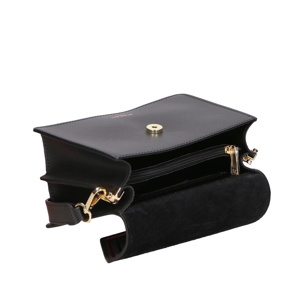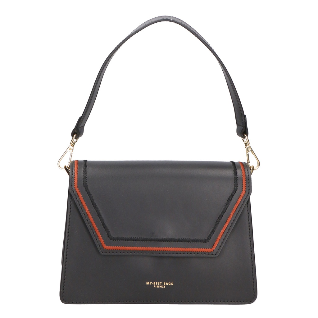 Sac à main à trois compartiments pour femme avec poche extérieure ouverte, fermeture magnétique et bandoulière amovible réglable. Produit artisanal italien en cuir véritable froissé.