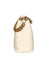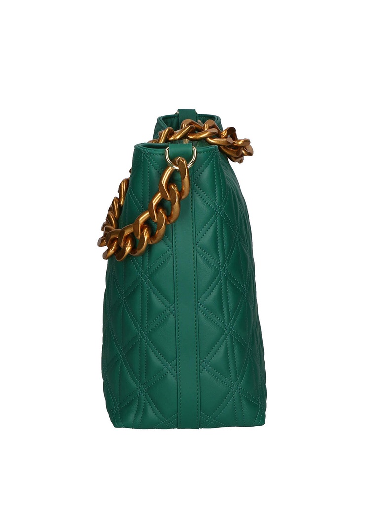 La texture matelassé conferisce un tocco di lusso discreto, mentre la chiusura a zip garantisce sicurezza e praticità. L’interno, foderato in un mix di cotone e poliestere, offre un ambiente accogliente per i tuoi oggetti essenziali. La tracolla, arricchita da una catena dorata, aggiunge un tocco di raffinatezza e permette di indossare la borsa comodamente a spalla.