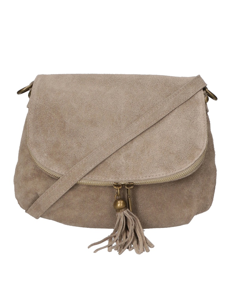 Abbraccia l'eleganza senza tempo con questa borsa a tracolla, un accessorio versatile che aggiunge un tocco di raffinatezza al tuo look quotidiano. Realizzata in pregiata pelle scamosciata, questa borsa incarna l'artigianalità italiana, un vero e proprio Made in Italy che si distingue per la qualità dei materiali e l'attenzione ai dettagli.