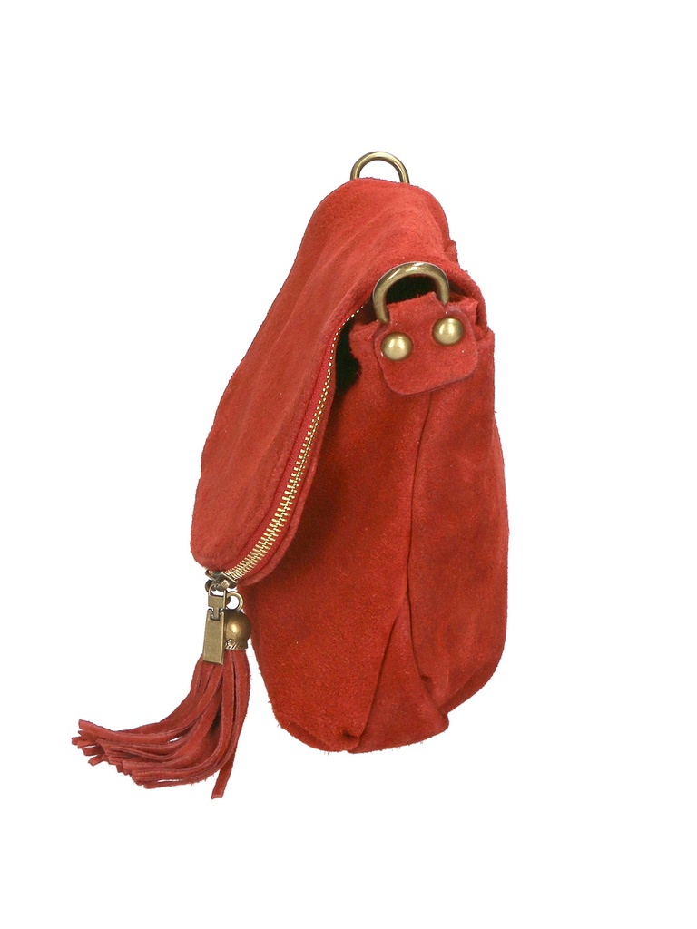 Il dettaglio distintivo è il grazioso pendente a frangia, che aggiunge un tocco bohémien e sofisticato. La tracolla regolabile, con una lunghezza di 60 cm, permette di indossare la borsa comodamente a spalla o a tracolla, adattandola al tuo stile e alle tue esigenze.