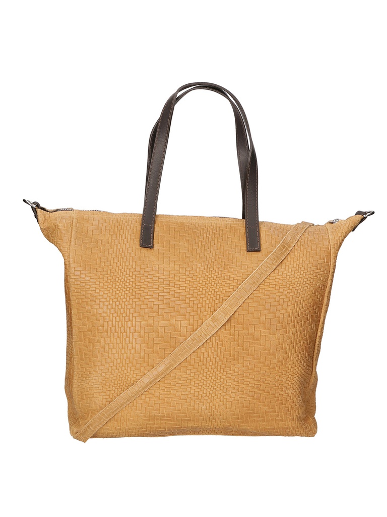 Eleva il tuo stile quotidiano con questa sofisticata borsa a spalla, un perfetto connubio tra artigianalità italiana e design contemporaneo. Realizzata con pregiata pelle scamosciata intrecciata stampata, questa borsa offre un tocco di texture e originalità ineguagliabile.