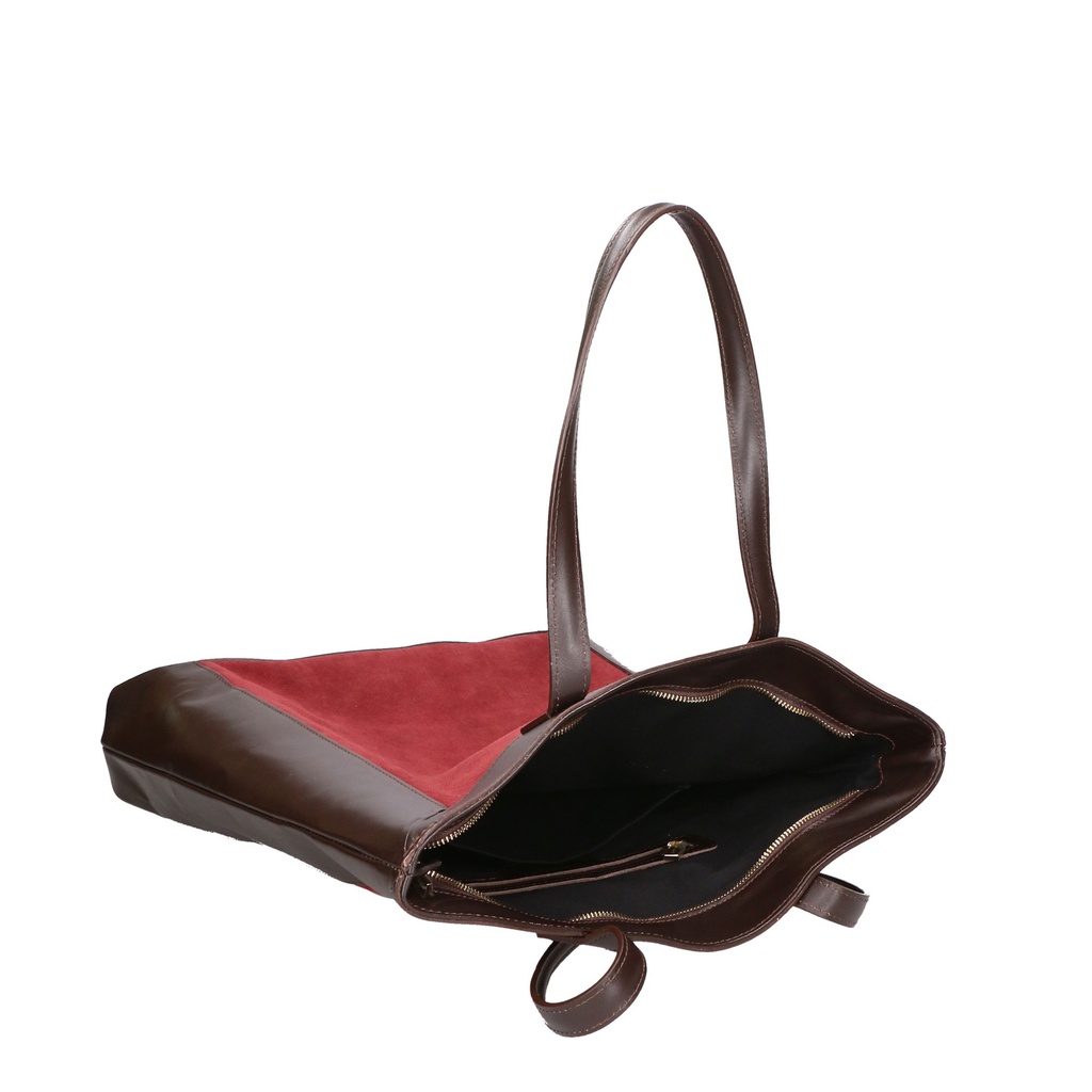 Borsa a mano a scomparto unico da donna. Prodotto artigianale italiano in vera pelle sauvage e scamosciato. Made in Italy