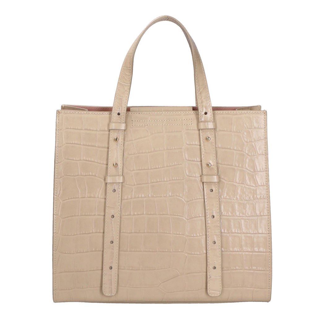 Borsa a mano a triplo scomparto da donna con tracolla rimovibile regolabile e doppi manici regolabili. Prodotto artigianale italiano in vera pelle stampa cocco. Made in Italy