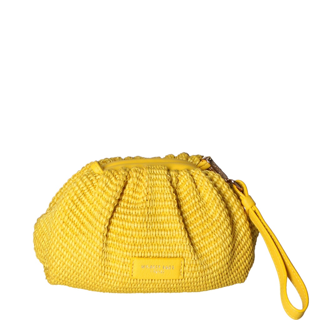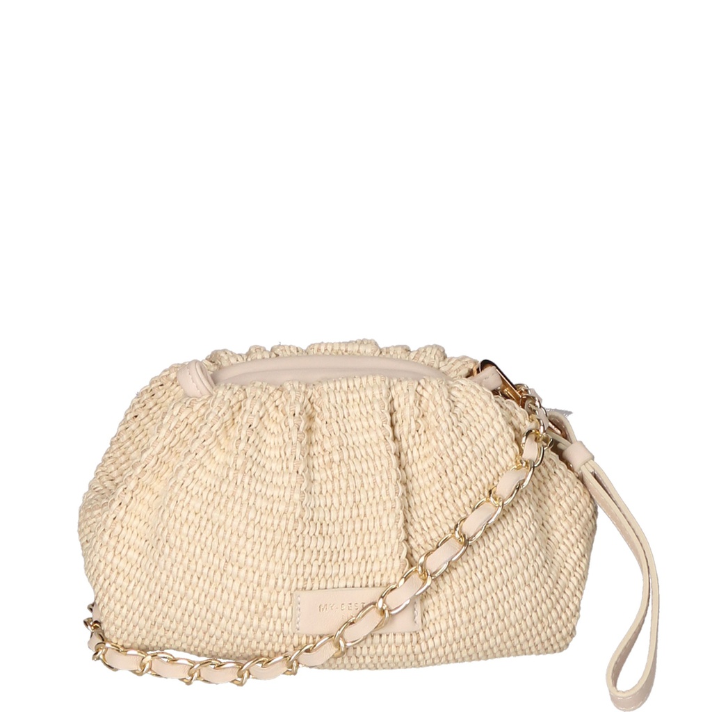 Borsa a tracolla a scomparto unico da donna con tracolla rimovibile. Prodotto artigianale italiano in paglia tabru con dettagli in pelle sauvage e all'interno vera pelle scamosciata. Made in Italy