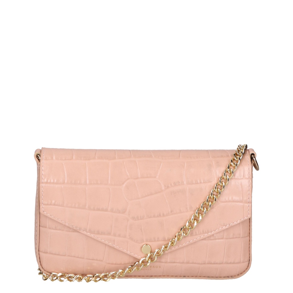 Pochette donna con tracolla in catena rimovibile. Prodotto artigianale italiano in vera pelle stampa coccodrillo. Made in Italy