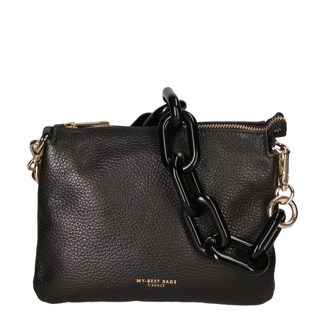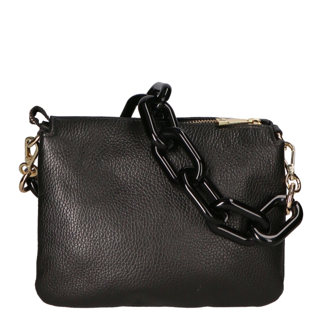 Borsa a tracolla triplo scomparto da donna con tracolla rimovibile e manico in catena in resina rimovibile. prodotto artigianale italiano in vera pelle dollaro laminato. Made in Italy
